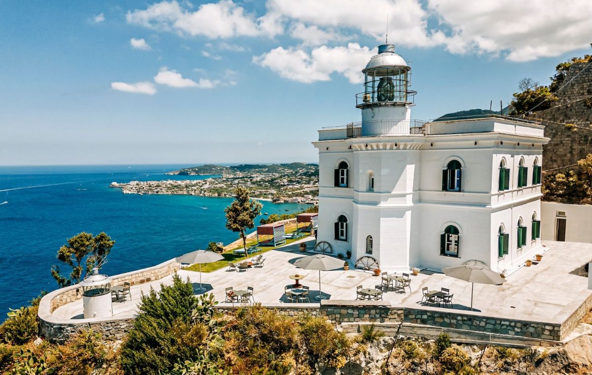 The Punta Imperatore Lighthouse is a historic maritime beacon perched atop a dramatic promontory on Ischia Island, overlooking the Tyrrhenian Sea. Originally built in the late 19th century and rebuilt in 1916, its white masonry tower stands about 13 m high with a focal height of 164 m above sea level, visible up to 22 nautical miles. The site offers spectacular sea views and sunsets, making it one of the island’s most scenic lookout points.